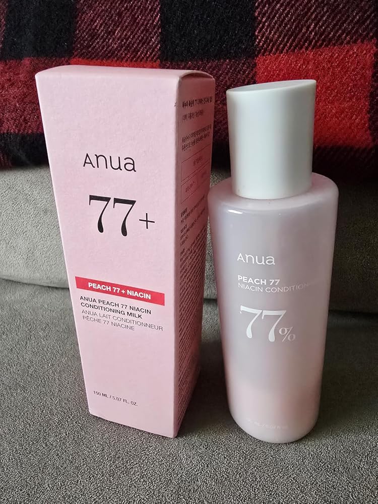 anua peach 77 niacin conditioning milk is a lightweight milky lotion that delivers deep hydration while brightening the complexion. the formula features 77% peach extract for nourishment, 2% niacinamide with vitamin b12 to brighten and even tone, triple hyaluronic acid to lock in moisture, and ceramides to reinforce the skin barrier. it is suitable for all skin types and nourishes without a greasy feel, leaving a radiant, soothed complexion. how to use: after cleansing and serum, apply a small amount and spread evenly across the face; layer for added hydration in dry conditions.
