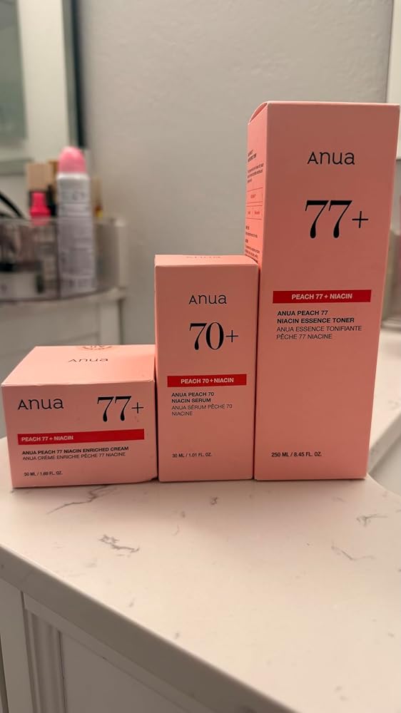 anua peach 77 niacin essence toner is a lightweight toner-essence that blends 77% peach extract with 5% niacinamide to brighten the complexion and help reduce the appearance of pigmentation. it smooths the skin while reinforcing the moisture barrier with panthenol and ceramides, and hyaluronic acid delivers plump, dewy hydration. peach melting peel technology gently exfoliates dead skin cells, refining texture and promoting a luminous glow.
